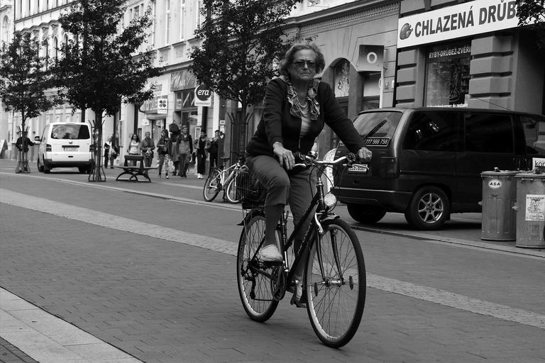 Keywords: ciclista black and white mrs round ride road street českě české budějovice cable street woman stone face