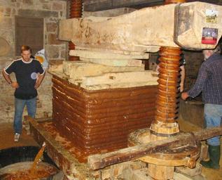 Keywords: Cider pressing Jersey Faîs'sie d'Cidre 2006.jpg Mechanische Packpresse zur Apfelsaftgewinnung pressing apples for cider; taken at La Faîs'sie d'Cidre Hamptonne Jersey 22 October 2006 Jèrriais du cidre d'souos l'amet à La Faîs'sie d'Cidre Hamptonne Jèrri 22 d'Octobre 2006 own own photo 2006-10-22 Man vyi Cider from Jersey La Faîs'sie d'Cidre Cider presses |