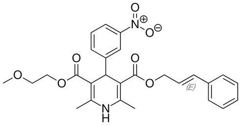 Keywords: Cilnidipine.svg validSVG Skeletal formula of cilnidipine ”a dihydropyridine L-type calcium channel <small>L</small>-type calcium channel blocker Created using http //www acdlabs com/download/chemsk html ACD/ChemSketch 10 0 http //www inkscape org Inkscape and http //www vim org vim Own Fvasconcellos 2008-06-14 Alkene derivatives Carboxylate esters Dihydropyridine calcium channel blockers Ethers Methyl ethers Nitrobenzenes Phenyl compounds |