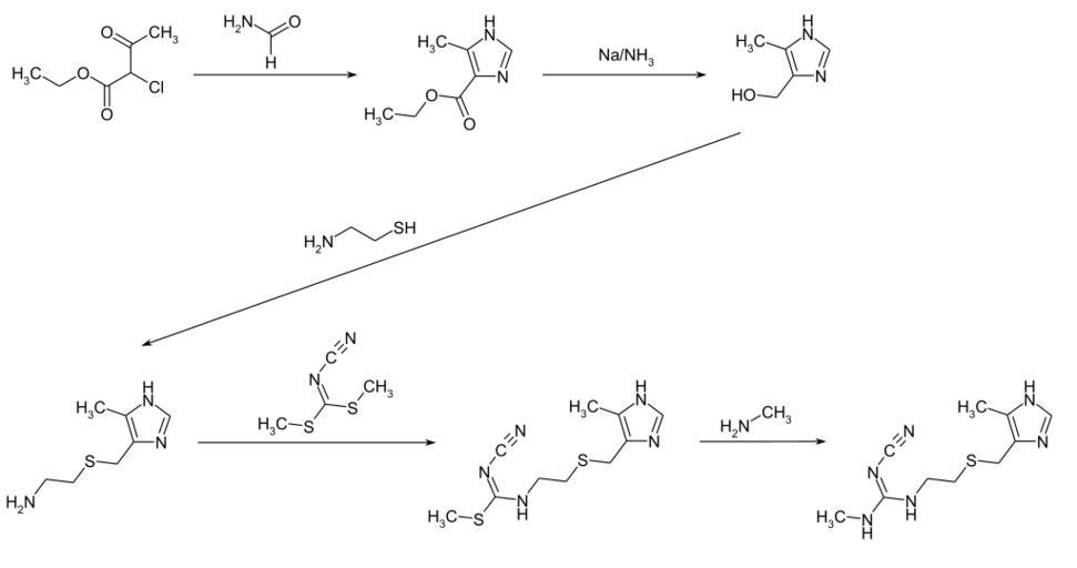 | Keywords: Cimetidine synthesis 01.svg Synthesis of Cimetidine own 2014-06-26 Steffen 962 PD-chem Cimetidine Drug syntheses Cc-zero ImageNote 1 507 351 363 183 1949 1028 2 There is a missing reagent or missing step here - the alcohol needs to be activated as a leaving group before being displaced by cysteamine ImageNoteEnd 1 |