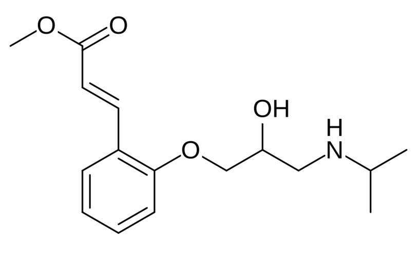 Keywords: Cinamolol.svg Chemical structure of cinamolol Own 10 35 29 March 2014 UTC Ed Edgar181 Cinnamate esters Methyl esters Beta blockers