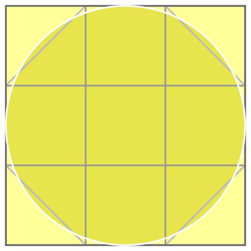 | Keywords: Circle in square Egyptian.svg en A square with inscribed circle and subdivided into parts by a grid illustrating an ancient method of calculating a circular area by approximation As demonstrated in the Rhind Papyrus book II problem 48 copied by Ahmes/Ahmose around 1550 BC The area of a circle is estimated as roughly 7/9 of a square whose side equals the circle's diameter i e pi is approximated by 28/9 3 111 de Ein Kreis der einem Quadrat eingeschrieben ist das dreiteilend durch ein Gitter zerlegt wird Zur Illustration der näherungsweisen Berechnung einer Kreisfläche nach der im Papyrus Rhind überlieferten Methode als Kopie durch Ahmes/Ahmose etwa 1550 v Chr Die Fläche eines Kreises wird damit auf ungefähr 7/9 der eines Quadrats geschätzt dessen Seitenlänge gleich dem Kreisdurchmesser ist; die Zahl pi wird hierbei angenähert durch 28/9 3 111 own R elation 2011-01-21 Other fields a text editor 43737 487 d e Cc-zero Circle area Rhind Mathematical Papyrus SVG Ancient Egypt |