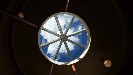 Keywords: circle structure roof design symbol pattern skylight modern ceiling architecture construction window sky glass bright