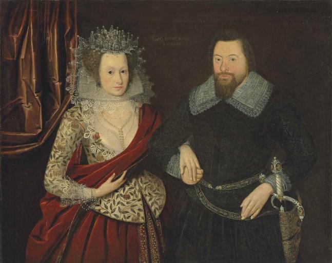 Keywords: Circle of William Larkin.jpg Double portrait of a lady in an embroidered bodice waistcoat with a red petticoat and mantle and a gentleman in black with an elaborate sword with a cameo of St George century 17 Technique oil canvas in 40 25 50 125 object history credit line accession number Christie's online 5916356 10390 170 London 10 July 2015 page no more available https //tools wmflabs org/zoomable-images/zoomify php path http //www christies com/lotfinderimages/d59163/d5916356 zoom 4 original version PD-old-100 William Larkin 17th-century oil on canvas paintings in the United Kingdom Embroidered dresses in art Embroidered jackets in art Jacobean embroidery Lace in art Portraits of couples Portraits with swords 1610s fashion Supportasse Lace collars in art |