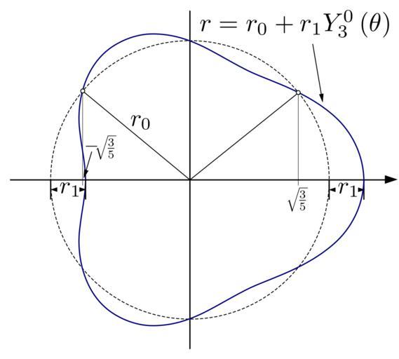 | Keywords: Circular Harmonic Y(3,0) Polar Diff.svg Constant added to Legendre Polynomial of cos with l 3 m 0 Own Inkscape 2007-05-24 Constant added to Legendre Polynomial of cos with l 3 m 0 - Equation <math>r r_0+r_1 L_3 0 \left \cos \theta \right </math><br> <math>r_0 1 \quad r_1 0 25</math> - Co-ordinate System Polar - Range 0 2 - 2 - colspan 2 Points of Interest r - Maxima <math>\left 0 r1+r0 \right \ </math> <br> <math>\cos \left \theta \right - \frac 1 \sqrt 5 \ </math> - Minima <math>\left r0-r1 \pi \right \ </math> <br> <math>\cos \left \theta \right \frac 1 \sqrt 5 \ </math> - Roots <math>\theta \frac \pi 2 \frac 3\pi 2 </math><br> <math>\cos \left \theta \right \pm \sqrt \frac 3 5 \ </math> Spherical harmonics |