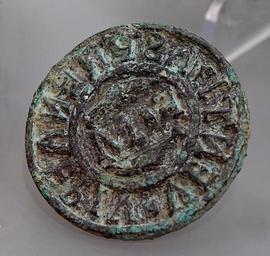 | Keywords: Circular molding stamp Massimo.jpg Circular stamping mold for bricks and tiles Bronze 3rd century CE From the Tiber Rome Moule à estamper circulaire pour marquer les briques et les tuiles Bronze IIIe siècle ap J -C Provenance Tibre Museum Palazzo Massimo Basement object history credit line accession number Marie-Lan Nguyen 2006 other versions Ancient Roman bronze brick stamps Archaeological seals device Ancient Roman inscriptions in Rome 3rd-century bronzes in Italy Ancient Roman bronzes in Rome Round objects Roman antiquities in the Palazzo Massimo alle Terme |