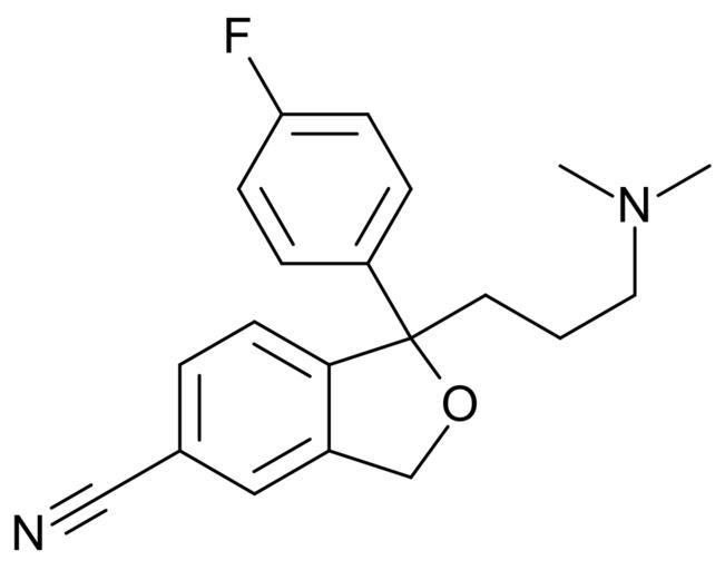Keywords: Citalopram structure.svg Chemical structure of w citalopram Self-made in BKChem 2007-03-16 User Mysid Citalopram