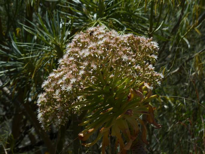 Keywords: city aeonium inflorescence flowers white dome-shaped aeonium urbicum aeonium thick sheet greenhouse crassulaceae plant