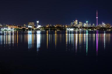 Keywords: city skyline waterfront night lights reflection water lake river cityscape urban architecture downtown skyscrapers new business modern metropolis tower panorama