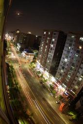 MAKE A MEME View Large Image city street fish eye night buildings road moon