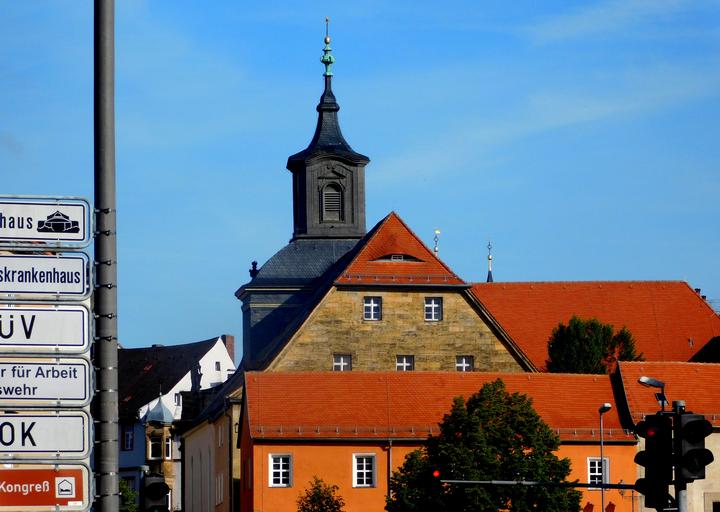 Keywords: city view steeple hospital church bayreuth upper franconia bavaria germany city church old town historically architecture roofs building outlook cityscape tower old sky