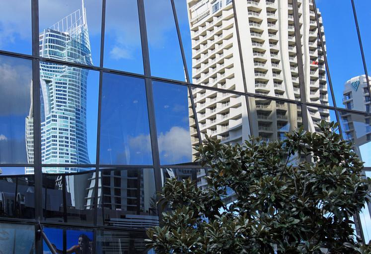 Keywords: city view surfers paradise mirroring skyscraper building reflections facade skyscrapers