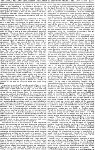 Keywords: Civilisation in relation to the abdominal viscera, with remarks on the corset 2.png Civilation in relation to the abdominal viscera The Lancet 1909-11-13 Lane W Arbuthnot PD-old Permanent corset treatment