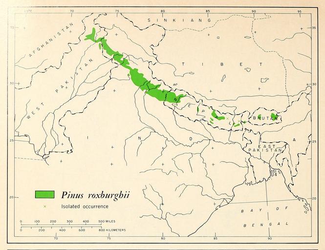 | Keywords: CL-24a Pinus roxburghii range map.png en Map 24a Pinus roxburghii distribution 1966-02 http //www biodiversitylibrary org/bibliography/66393 /summary Geographic distribution of the pines of the world Miscellaneous publication no 991 U S Department of Agriculture Forest Service Washington D C February 1966 William B Critchfield Elbert L Little Jr U S Department of Agriculture Forest Service PD-USGov Uploaded with UploadWizard Geographic Distribution of the Pines of the World Pinus roxburghii |