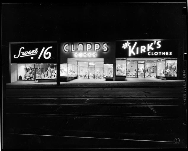| Keywords: vancouver neon blackandwhite monochrome black and white PHOTO NUMBER: 80511 DESCRIPTION: Sweet 16, Clapps Shoes, Kirk's Clothes, 4400 block of West 10th Avenue, Vancouver, BC PHOTOGRAPHER:Artray DATE: 1948 SUBJECTS:Retail stores, Clothing trade, West 10th Avenue, Neon More information on our historical photograph collection: www.vpl.ca/historicalphotos PHOTO NUMBER: 80511 DESCRIPTION: Sweet 16, Clapps Shoes, Kirk's Clothes, 4400 block of West 10th Avenue, Vancouver, BC PHOTOGRAPHER:Artray DATE: 1948 SUBJECTS:Retail stores, Clothing trade, West 10th Avenue, Neon More information on our historical photograph collection: www.vpl.ca/historicalphotos |