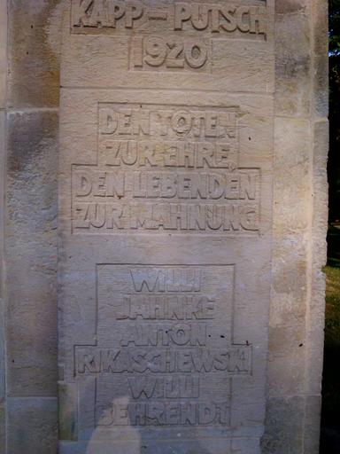 | Keywords: Clara-Zetkin-Park 25.jpg de Gedenkstätte für die 1920 im Kampf gegen den Kapp-Putsch Gefallenen im Clara-Zetkin-Park in Wittenberge Landkreis Prignitz Land Brandenburg 2016-09-10 08 45 39 own Yoursmile other versions cc-zero de Cultural heritage monuments in Wittenberge Images from Wiki Loves Monuments 2016 DE-BB Monuments and memorials in Wittenberge Kapp-Putsch memorials Clara-Zetkin-Park Wittenberge Uploaded via Campaign wlm-de-bb Taken with Praktica luxmedia 12-Z4 | ||||