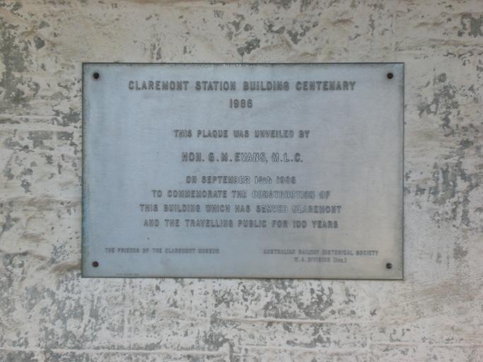 | Keywords: Claremont Station Building, plaque.jpg  An image from a compact camera of the plaque affixed to the Claremont Station Building at Claremont railway Station Western Australia Own 2007-12-19 Cygnis insignis Images by Cygnis insignis Buildings in Western Australia |