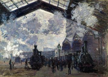 Keywords: Claude Monet, The Gare St-Lazare, 1877.jpg Artwork en After his return to France from London Monet lived from 1871-78 at Argenteuil on the Seine near Paris In January 1877 he rented a small flat and a studio near the Gare St-Lazare and in the third Impressionist exhibition which opened in April of that year he exhibited seven canvases of the railway station This painting is one of four surviving canvases representing the interior of the station Trains and railways had been depicted in earlier Impressionist works and by Turner in his 'Rain Steam and Speed' but were not generally regarded as aesthetically palatable subjects Monet's exceptional views of the Gare St-Lazare resemble interior landscapes with smoke from the engines creating the same effect as clouds in the sky Swift brushstrokes indicate the gleaming engines to the right and the crowd of passengers on the platform 1877 Oil on canvas 54 3 x 73 6 cm Institution National Gallery London object history exhibition history credit line Bought 1982 http //www nationalgallery org uk/paintings/claude-monet-the-gare-st-lazare National Gallery London Signed accession number NG6479 PD-old-auto 1926 Saint-Lazare Station by Claude Monet Paintings by Claude Monet in the National Gallery London 1877 in Paris 1877 paintings in France |