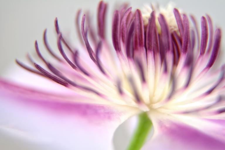 Keywords: clematis blossom bloom close pink white stamens flower plant bloom sun climber stamp flowers petal detail