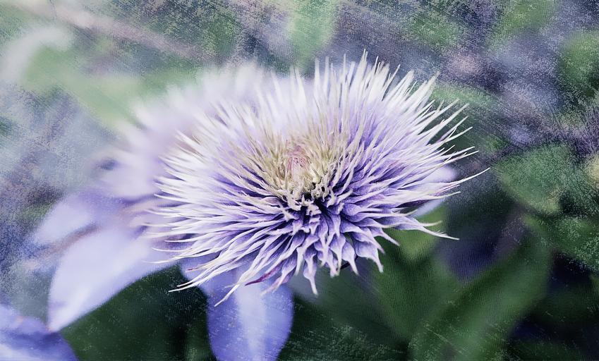Keywords: clematis flower blossom bloom plant violet climber garden blue garden plant blue clematis nature close painting