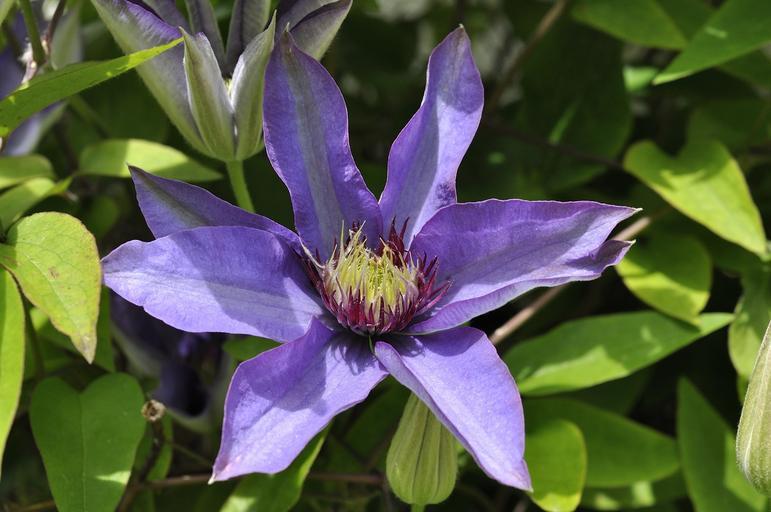 Keywords: clematis flower blossom bloom close garden purple plant botany garden plant spring