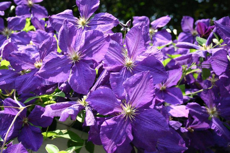 Keywords: clematis flowers purple sunny spring nature garden blossom botanical cheerful plant