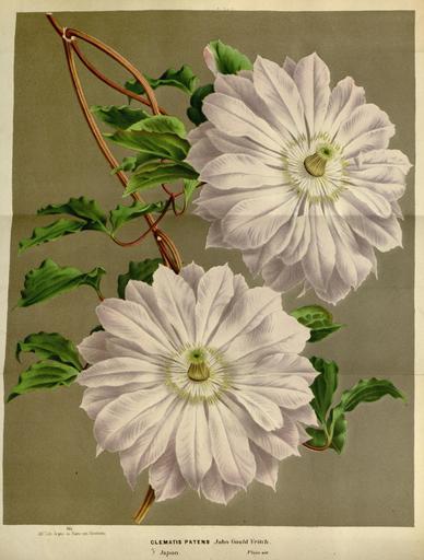 Keywords: Clematis patens 'John Gould Veitch'.jpg en Clematis patens 'John Gould Veitch' 2012-07-07 Flore des Serres 18 85 f 1875-1876 1870 Van Houtte PD-Art Uploaded with UploadWizard Clematis 'John Gould Veitch'