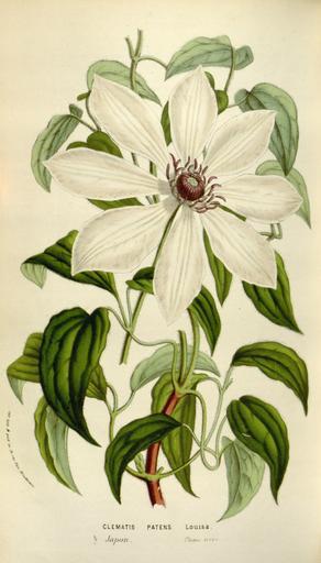 Keywords: Clematis patens 'Louisa'.jpg en Clematis patens 'Louisa' 2012-07-07 Flore des Serres 10 203 f 1052 1855 Van Houtte PD-Art Uploaded with UploadWizard Clematis patens