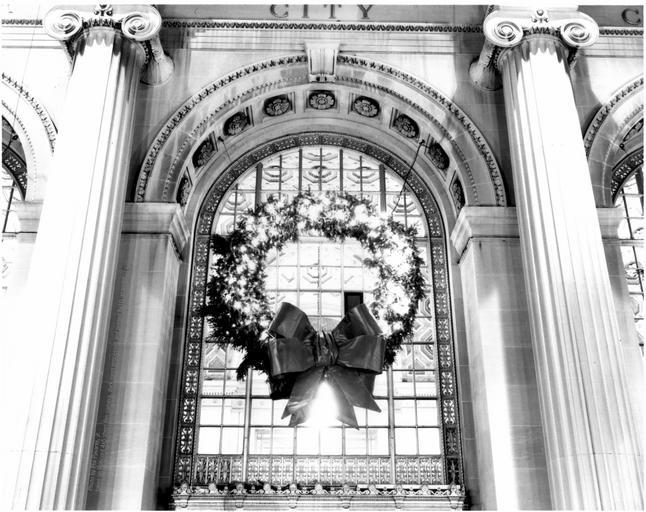 Keywords: cleveland public square square public ohio landmark yuletide downtown christmas holiday illumination wreath decoration xmas christmas lights holiday lights christmas decoration christmas background