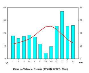 Keywords: Clima Valencia.png Data taken from the spanish page of Valencia ciudad 2005-09-14 own assumed Diotime Climate diagrams of Spain Climate of Valencia
