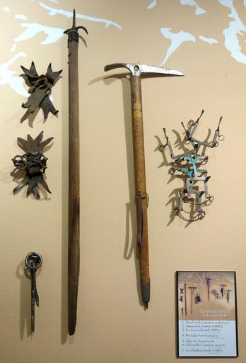 Keywords: Climbing tools - Mount Shasta Sisson Museum - DSC02839.JPG en Exhibit in the Mount Shasta Sisson Museum Mount Shasta City California USA Photography was permitted in the museum without restriction 2013-11-10 18 49 02 own Daderot other versions cc-zero Mount Shasta Sisson Museum Uploaded with UploadWizard Climbing equipment Ice axes Crampons |