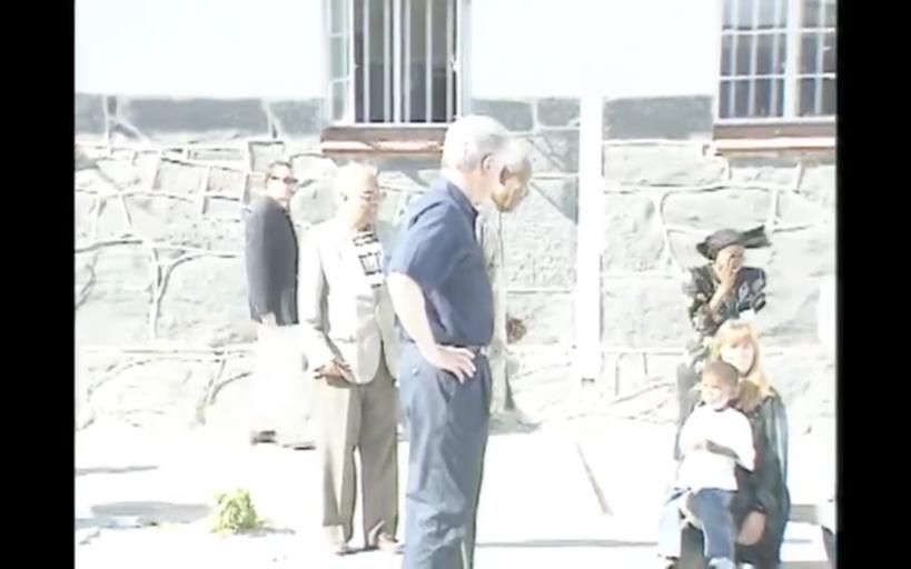 | Keywords: Clintons and Mandelas with children A.png en After Nelson Mandela gave the Clintons a tour of his former prison cell at Robben Island the group was met outside by a group of children who serenaded them 1998-03-27 Clinton Presidential Library https //www youtube com/watch v ndPrtbWCwVM White House Television crew other versions PD-USGov Robben Island Bill Clinton and Nelson Mandela Bill Clinton in 1998 | ||||
