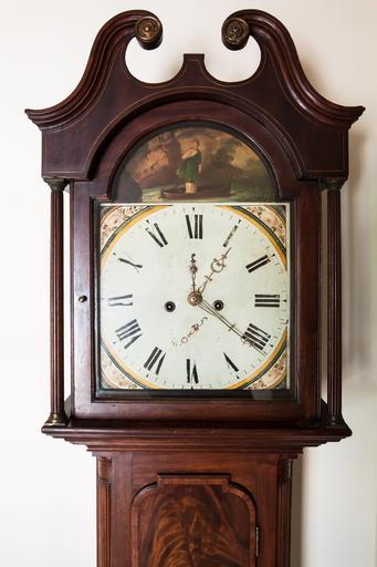 Keywords: clock grandfather clock pointer roman numerals wood time time of painted old antique
