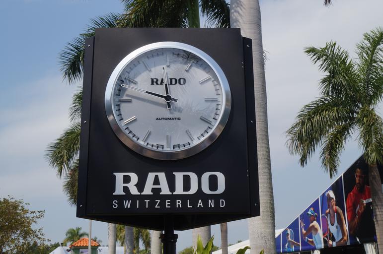 Keywords: clock sign outdoor time switzerland rado timepiece black big public