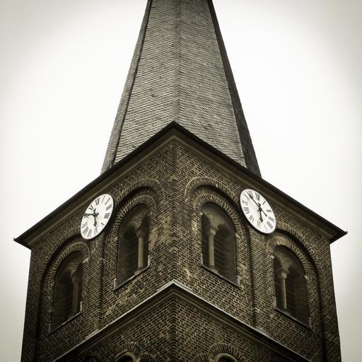 Keywords: clock steeple church clock church clock tower architecture building historically time pointer faith christian christianity st bartholomew cologne porz urbach time of clock face hours minutes time indicating