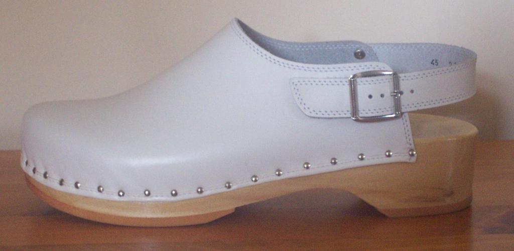 | Keywords: Clog with heelstrap-Berkemann-white.jpg Clog with wooden sole leather upper and heelstrap made by the German company Berkemann Model Riemen-Toeffler Colour wood and white Clog mit Holzsohle und Leder-Oberschuh mit Fersenriemen Hersteller Berkemann Deutschland Modell Riemen-Toeffler Farbe holz und weiß own Kuchen 2005 Clogs of Germany Leather shoes |