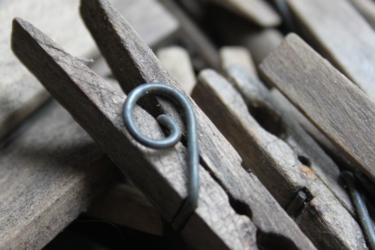 Keywords: clothes peg old brocante close up wood iron