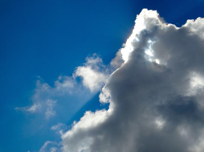 Keywords: clouds cloudy cloudiness hidden ray of light apparently blue sky blue bright lichtspiel