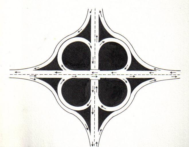 Keywords: Cloverleaf (PSF).jpg line art drawing of a cloverleaf Cloverleaf PSF svg Diagrams of interchanges
