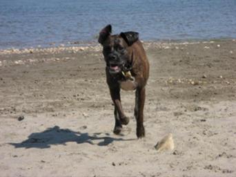 Keywords: Cloverrunning 1.jpg Boxer running at full tilt 2006-09-10 own assumed JoyceAmar Category Brindle dogs Boxer dog
