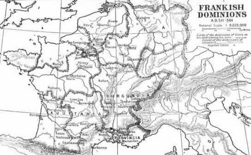 Keywords: ClovisDomain.jpg <u>IMAGE TITLE</u> Frankish Domains 511-561 BW Source Gregory of Tours History of the Franks trans Ernest Brehaut New York Columbia University Press 1916 Public domain image digitized version from http //www fordham edu/halsall/sbookmap html Internet Medieval Sourcebookhttp //www fordham edu/halsall/maps/frankmapc6 jpg Source en Image ClovisDomain jpg Uploaded by en User Triton PD-old-70 Maps showing history of the Early Middle Ages Old maps of France Maps of the Merovingian territory Maps of Gauls France in the 6th century Germany in the 6th century |