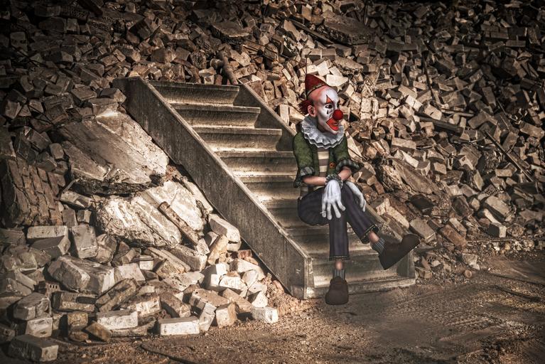 Keywords: clown fig sitting sad stones stairs fantasy