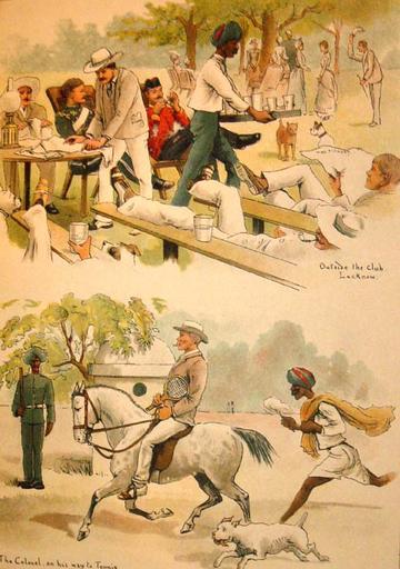 Keywords: Club.jpg en Lloyd's Sketches of Indian Life London 1890 chromolithographs enhanced with gum arabic Arrival in Bombay native women-- visions of Lalla Rookh waking in the morning street scene Central India revenge for noise donkey-riders soldiers croquet dust-sprinkling at the club The Alligator's Dinner Hour Camping Himalayas families hunting porters various sketches 1 various sketches 2 various sketches 3 various sketches 4 Source ebay Aug 2005 1890 http //www columbia edu/itc/mealac/pritchett/00routesdata/1800_1899/dailylife_drawings/lloyd1890/lloyd1890 html Lloyd's Sketches PD-Art Uploaded with UploadWizard W Lloyd 'Lloyd's Sketches of Indian Life' London Chapman Hall 1890 |