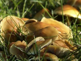 Keywords: clustered yellow tiny wild mushrooms toxic sunlight autumn fall nature meadow forest season wild plant close-up poisoned macro wild plant