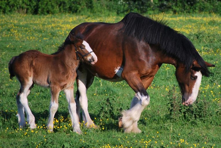 Keywords: clydesdales horses colt mare meadow farm rural pasture livestock countryside walking grazing portrait