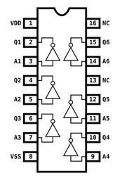 | Keywords: CMOS 4049 diagram.svg A technical drawing of the standard CMOS 4049 integrated circuit including pinout information and internal gate schematics A 4049 datasheet was used as a reference I created this file by hand in Notepad; large portions of it are based on my own previous work on similar layouts 2007-04-14 Joshua Griisser 05 27 14 April 2007 UTC I hereby release this work into the public domain This version replaces a previous upload of mine that was not to proper scale The English Wikipedia has an image Image NOT Pinout jpg that this is intended to replace IC pinout diagrams |