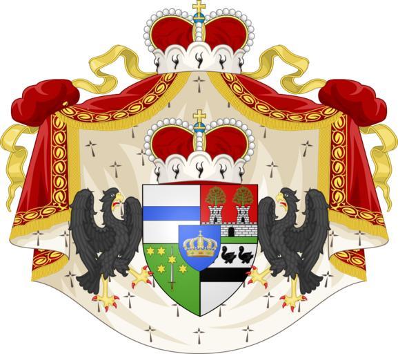 | Keywords: CoA of the dukes of Leuchtenberg (1826-1839).svg The supporters should be regardant en Coat of arms of August and Maximilian de Beauharnais dukes of Leuchtenberg and princes of Eichstätt after the 1826 augmentation Helmless version Sources http //geraldika ru/files/080512110012805 jpg 1826 augmentation fr Grandes armes d'Auguste de Beauharnais Blasonnement Ecartelé I de Leuchtenberg ; II de gueules au mur d'argent flanqué de deux tours le tout maçonné et ouvert d'argent deux arbres de sinople issants des tours d'fr Eichstätt ; III de sinople à l'épée haute d'argent garnie d'or accompagnée de 7 étoiles du même ; IV d'argent à la fasce de sable accompagnée en chef de trois merlettes du second de Beauharnais ; sur-le-tout d'azur à la couronne royale d'or 2011-12-25 own some elements by by sodacan Katepanomegas Yves cc-by-sa-3 0 Insignia Coat of arms of Josephine de Beauharnais Vicomtesse de Beauharnais svg Coat of arms of Princess of Leuchtenberg svg PD-art Coats of arms of the family de Beauharnais Coats of arms of the House of Bonaparte Auguste de Beauharnais Eagles in supporters Royal and ducal mantling |