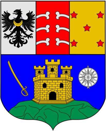 | Keywords: COA Viscount of Maracaju.svg en Coat of arms of Rufino Enéas Gustavo Galvão baron and viscount of Maracaju Source Archivo Nobiliarchico Brasileiro of Rodolfo Smith de Vasconcelos and Jaime Smith de Vasconcelos 1918 Riba28-maps PD-old insignia Escudo cortado em faxa na horizontal e esta partida em tres palas partes verticais ; na primeira de prata uma aguia estendida carregada de um crescente lua de oiro ouro no peito; na segunda de vermelho seis costas costelas de prata firmadas e póstas em duas palas; na terceira de oiro cinco estrellas de góles vermelho em santor; a segunda faxa ” em campo azul um castello de oiro sobre um monte de sinople verde entre uma bussola á sinistra esquerda e uma espada com folha lâmina e punho de oiro á destra direita SVG coats of arms of Brazilian baronies Continental heraldic shields |