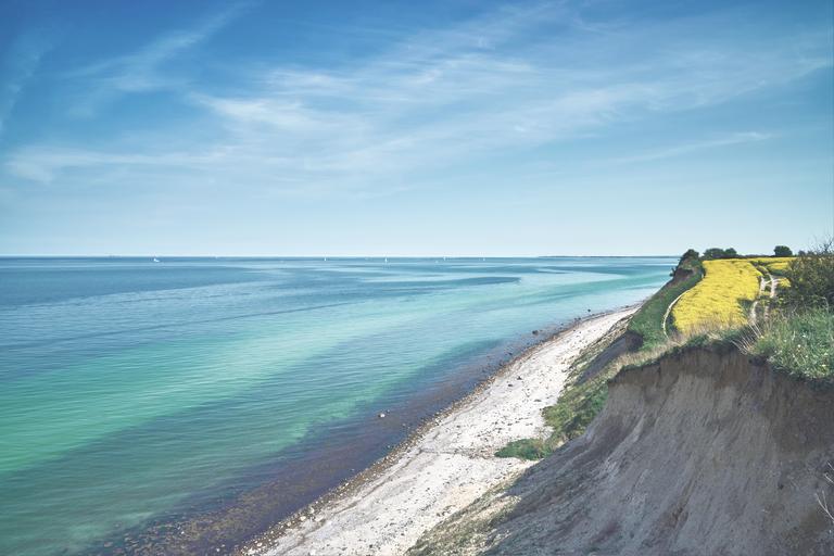 Keywords: coast cliff sky mecklenburg holstein beach sea baltic sea trail field oilseed rape oil field of rapeseeds yellow blue sand water stohl kiel