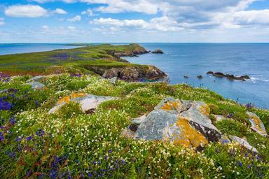 Keywords: coast lush vegetation grass wildflowers rocks boulders nordic scandinavia arctic summer green water ocean sea shore pristine remote nature coastline cliff seascape